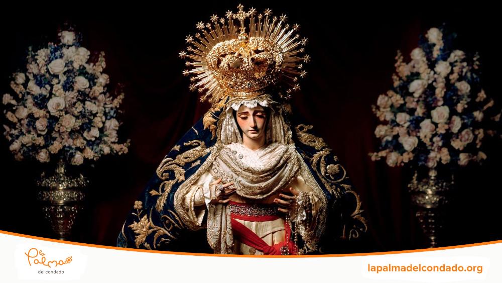 La imagen de María Santísima del Socorro preside el Santo Rosario Vespertino que la Hermandad de Nuestro Padre Jesús Nazareno organiza, culto externo para llevar a los hogares palmerinos la luz de la Virgen.